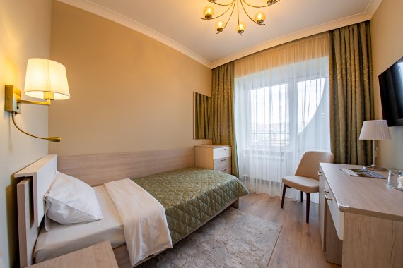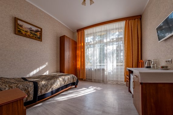 К услугам гостей предоставляются одноместные и двухместные номера, номера повышенной комфортности (двухкомнатные и трёхкомнатные). Все они оборудованы телевизором, холодильником и чайником. На территории санатория есть доступ в Интернет.