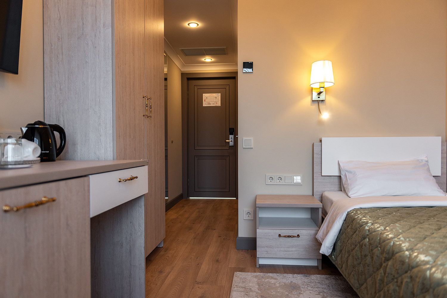 Комфортный одноместный номер с односпальной кроватью – идеальное решение для тех, кто ценит личное пространство и спокойный отдых. Здесь Вы сможете полноценно восстановиться и набраться сил, чтобы пребывание в нашем санатории принесло максимальную пользу для здоровья.